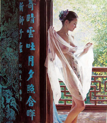 Họa sỹ Guan Zeju người Trung Hoa hiện sống và làm việc tại Mỹ, chủ đề trong tranh của họa sỹ này là thiếu nữ Trung Hoa trước cách mạng trong nền văn hóa giao thoa với Tây phương.