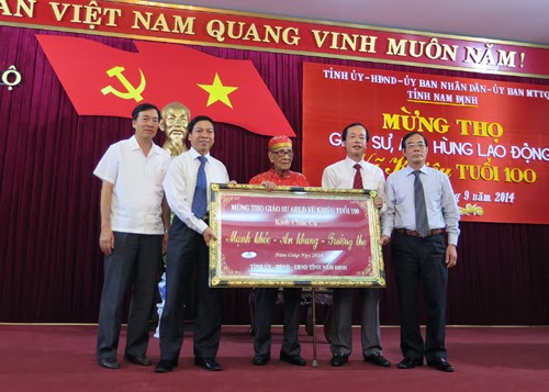Năm ngoái, các quan đầu tỉnh Nam Định, Đồng Nai tổ chức Mừng thọ trăm tuổi cụ theo tuổi âm lịch (lịch dưới).