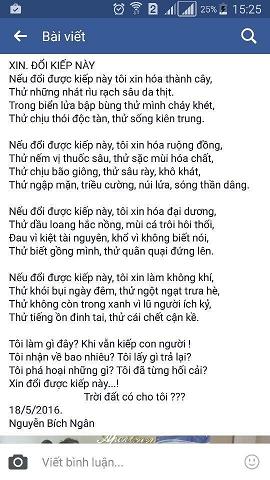 Sau khi bài thơ “Xin đổi kiếp này của Bích Ngân được cộng đồng mạng chú ý, cô bé 14 tuổi cho biết “không nghĩ là nó được chú ý nhiều như thế” và rất cảm ơn mọi người vì đã quan tâm.