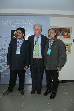 Nhà thơ kiêm họa sỹ Hoa Kỳ Kevin Bowen (giữa) và các nhà thơ quốc tế tại Hà Nội.