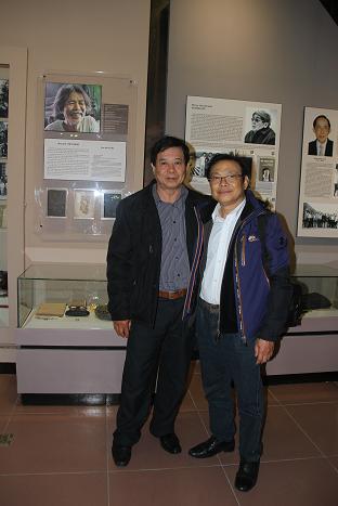 Nhà thơ Phạm Văn Đoan và Kim Chuông (phải) tại Bảo tàng Văn học VN