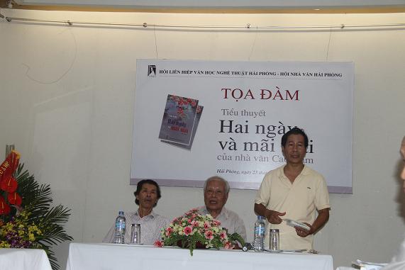 Mở đầu là phần trao Giấy khen của Hội Liên hiệp Văn học Nghệ thuật thành phố cho tiểu thuyết “Hai ngày và mãi mãi” của nhà văn Cao Năm. Tiếp theo là các tham luận sôi nổi của nhà văn Lê Thị Bích Hồng, Lưu Văn Khuê, Vũ Hoàng Lâm, Lương Kim Phương, Nguyễn Đức Thuận, Long Khánh...và nhà nghiên cứu lịch sử Nguyễn Khắc Phòng.