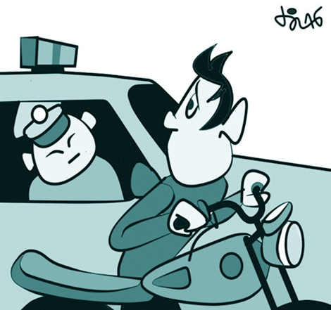 - Xe bị hỏng à? - Với dáng vẻ hoài nghi, đồng chí cảnh sát giao thông ngồi xuống sờ tay vào động cơ và ống xả rồi cười nói - Máy và ống xả nóng bỏng cả tay thế này còn nói là không đi xe...
