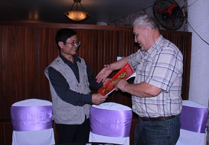 Phó Tổng Biên tập Báo Hải Phòng Hoàng Thi tặng nhà văn Nga số báo đặc biệt có bài của tác giả