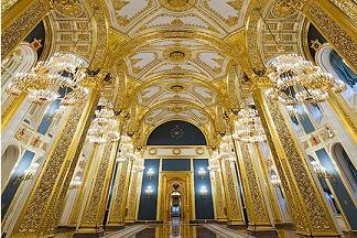 Điện Kremlin là một trong những công trình kiến trúc lịch sử nghệ thuật chính của quốc gia. Kremlin đang lưu giữ bộ sưu tập độc nhất vô nhị, ấy là những kỷ vật lịch sử kiến trúc và văn hóa linh hồn Nga như Nhà thờ Đức Mẹ Đồng Trinh, Nhà thờ Tổng lãnh Thiên thần Michael, Nhà thờ Truyền tin, Nhà thờ Hoàng gia. Những ảnh hình trong Cung điện chính ở Điện Kremlin sẽ khiến nhiều người khó tránh khỏi từ ngạc nhiên đến ngỡ ngàng, cùng ấn tượng choáng ngợp trước những siêu phẩm tuyệt đẹp của các nghệ nhân Nga. Có Hội trường Alexander lộng lẫy với những bức tường trang trí hoa văn mạ vàng. Rồi Hội trường Saint Gerorge, với các phòng khánh tiết ngời sáng bởi những chuỗi đèn chùm pha lê lớn cũng mạ vàng nguy nga và tráng lệ. Hội trường Saint Andrew trở thành căn phòng đặt Ngai vàng cho hoàng đế. Nhưng vào năm 1932 nó trở thành phòng họp cho các sự kiện lớn. Toàn bộ hội trường được mạ vàng vô cùng lộng lẫy lung linh những cột đá sa-phia và cẩm thạch xanh ngắt. Trên thực tế người bình thường không ai được phép vào Điện Kremlin và chụp ảnh trong đó. Nhưng nội thất cầu kỳ mạ vàng cùng những chiếc ngai vàng này lại từng là nơi giải trí cho các Công chúa nhỏ và Hoàng tử nhỏ. Phòng Faceted cũng mang một vẻ lộng lẫy khác thường, những bậc thang cẩm thạch, những hành lang trần thiết mái vòm lóa vàng dài miên man như mê cung. Hội trường mạ vàng lộng lẫy cùng thảm đỏ trải dài trên sàn nhà Cung điện gây cảm xúc từng bước từng chặng, lôi cuốn người xem mê mẩn triền miên. Đặc biệt là tiền sảnh Malachite trông hết sức hoành tráng và nguy nga. Nếu không đến nước Nga tham quan Điện Kremlin thì những ảnh hình này chỉ có ở trong truyện cổ tích tuổi ấu thơ.