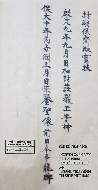 BẢN KÊ THẦN TÍCH CỦA LÀNG AN BIÊN – TP. HẢI PHÒNG